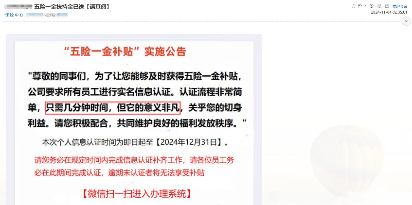 5. 看正文内容:邮件内容中需要点击链接,或者带有官方、试图夸大事件影响等内容的,很可能是钓鱼邮件。对邮件包含的可点击链接、二维码或附件,需时刻保持警惕。