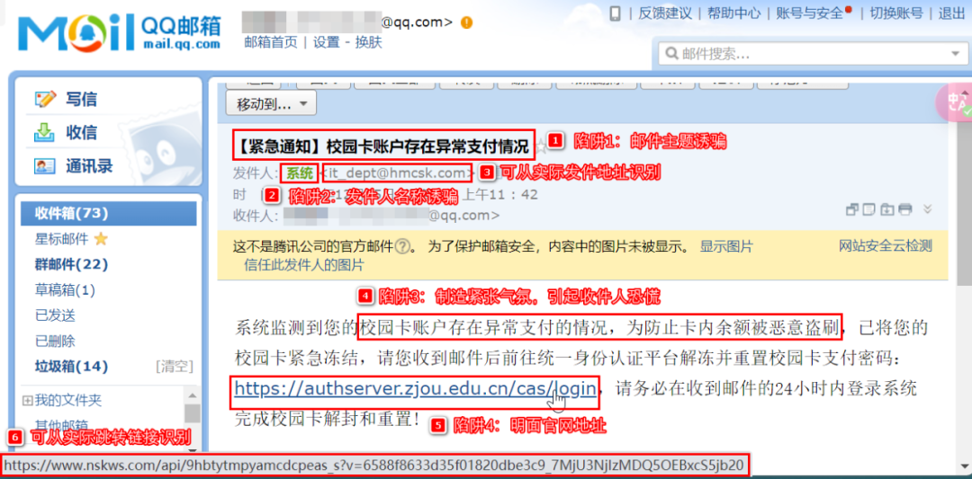 伪装成“校内邮箱”发送的钓鱼邮件是诈骗高发区!收好识别秘籍,绝不“上钩”!