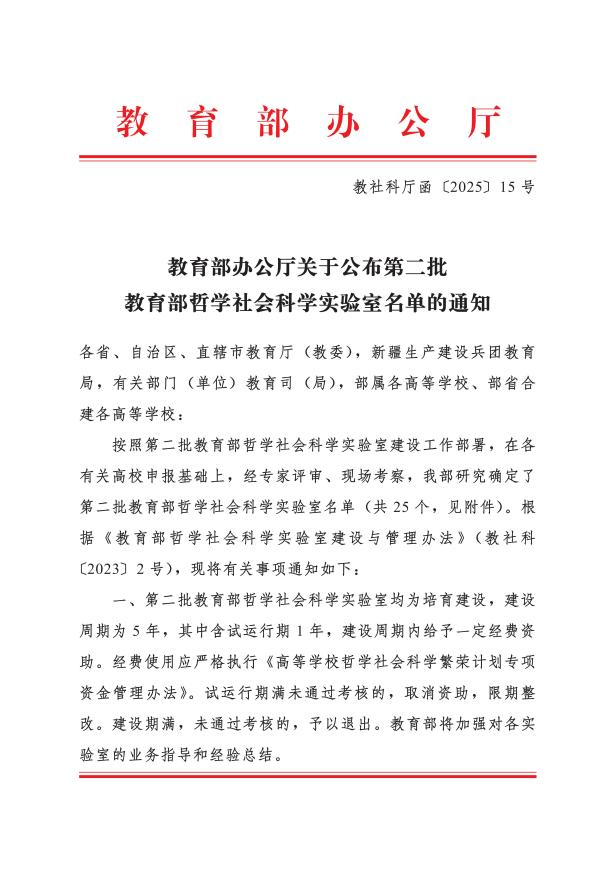 2016年5月17日,习近平总书记在哲学社会科学工作座谈会上强调,要实施哲学社会科学创新工程,搭建哲学社会科学创新平台,全面推进哲学社会科学各领域创新。2020年12月,教育部启动哲学社会科学重点实验室试点建设,2021年12月首批30家教育部哲学社会科学实验室名单公布,此次第二批教育部哲学社会科学实验室建设名单的落地,正是习近平总书记重要讲话精神的深入践行。